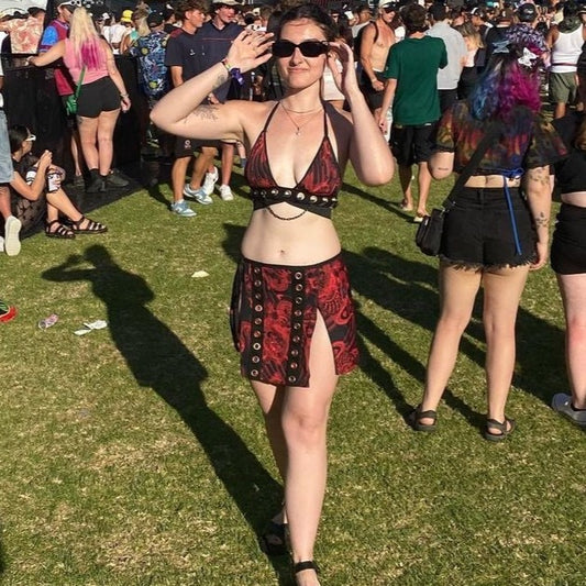 Margaux Jingle bralette and Split Skirt or Flare Pants