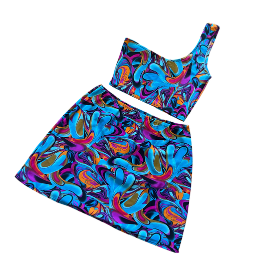 • Cali Dreams Top and Disco Skirt in Psychedelic Swirl