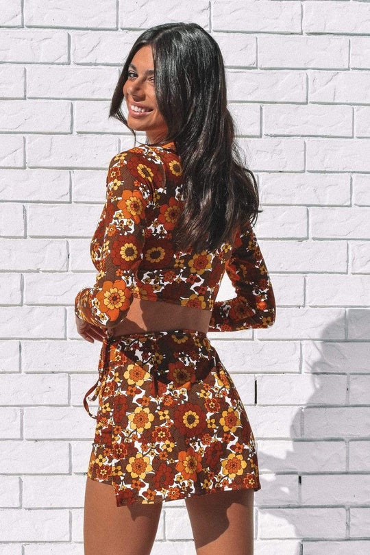 The fitted little '70s inspired showstopper skirt can be styled for Summer festivals with the matching bralette.
